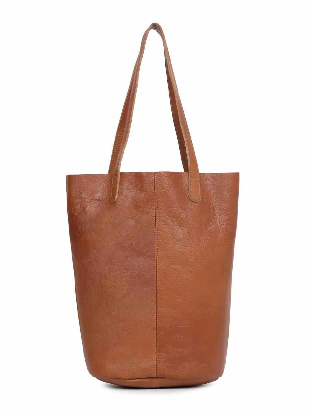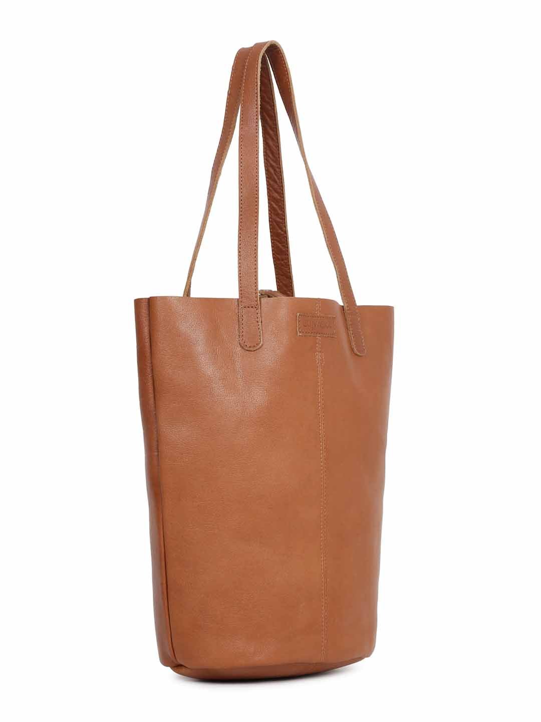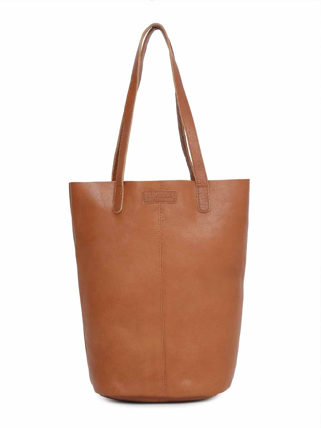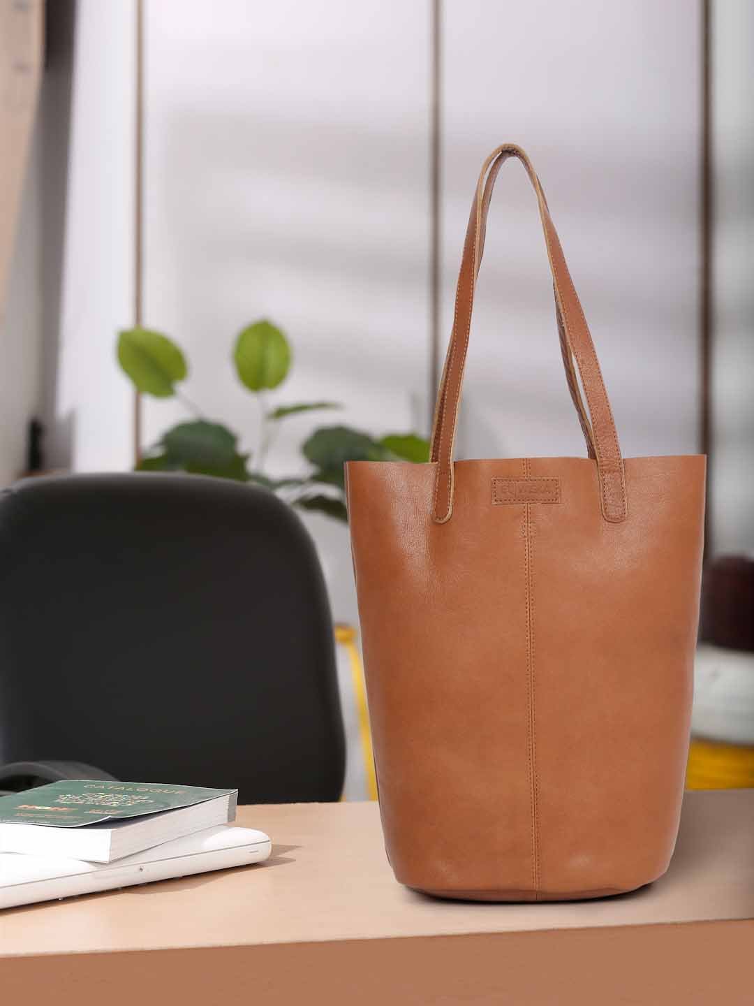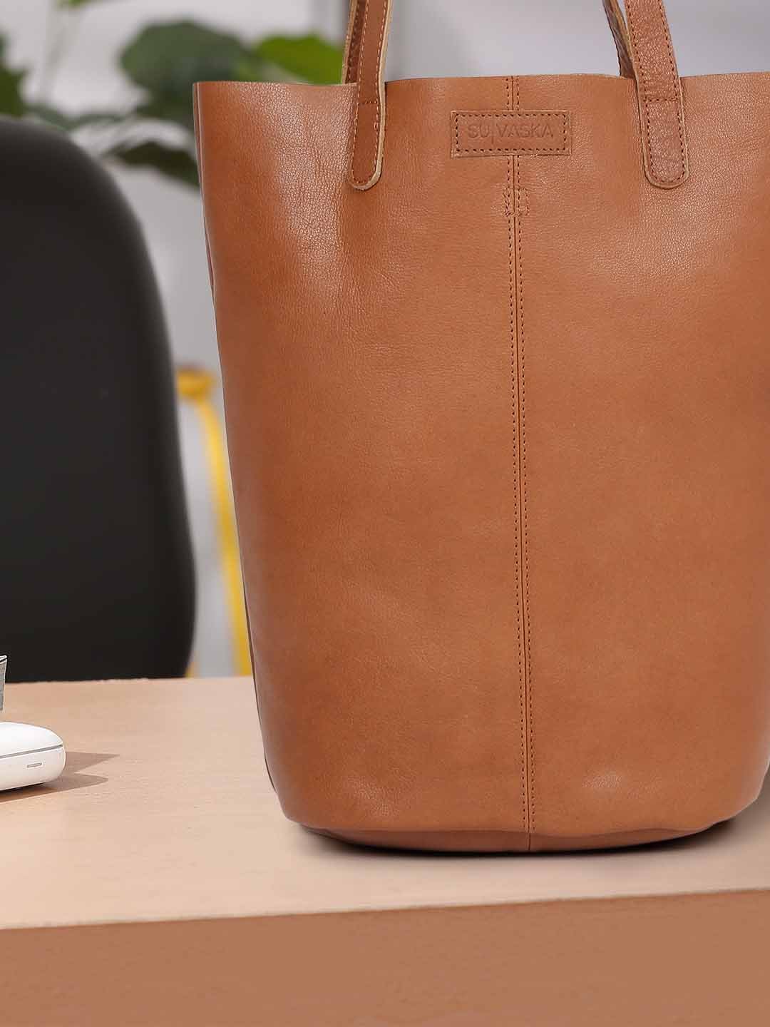 Suvaska Leather Tote Bag for Woman | Tan Brown Unlined Bucket Bag | Premium Genuine Leather Double Handle Shoulder Handbag