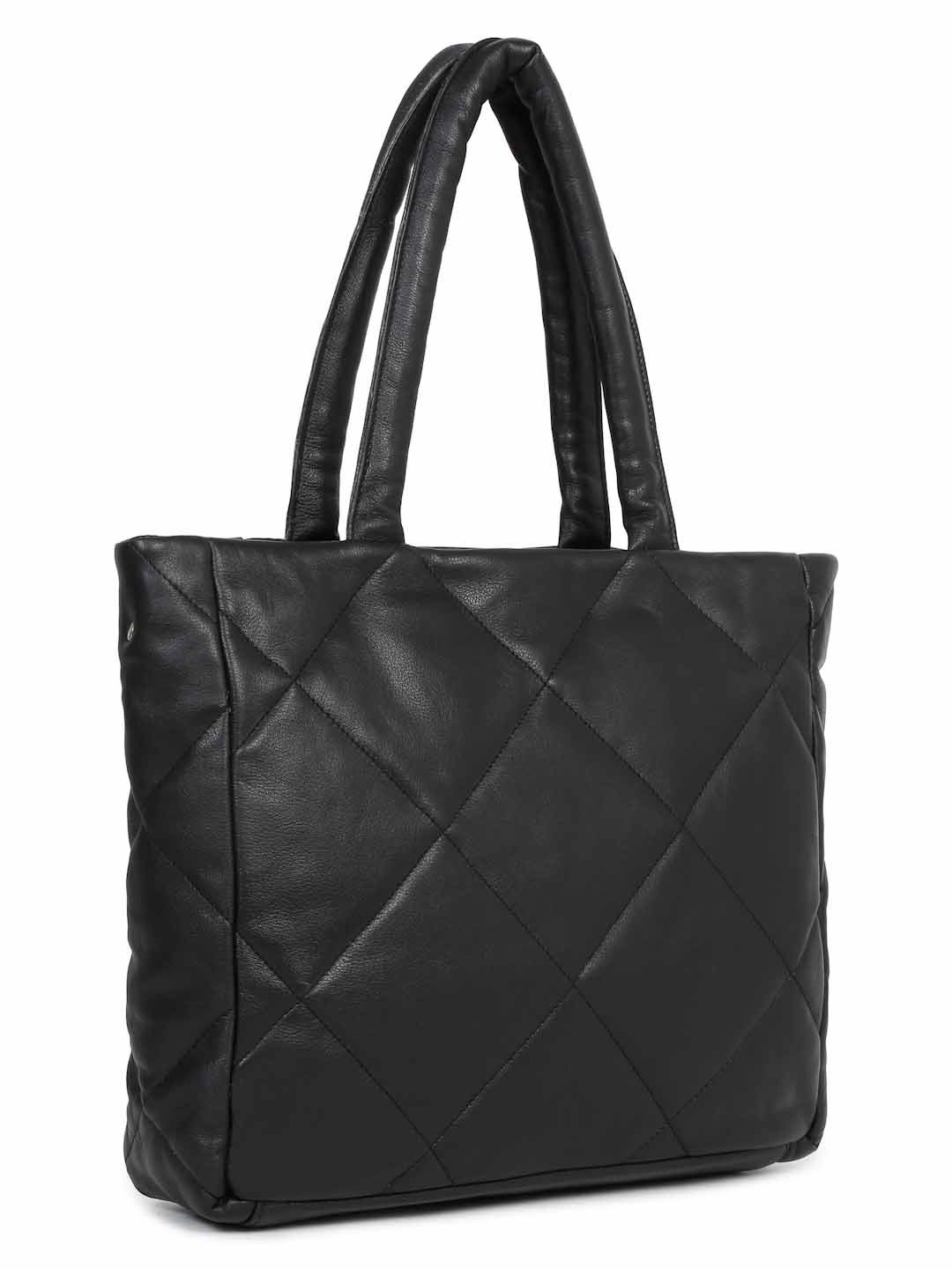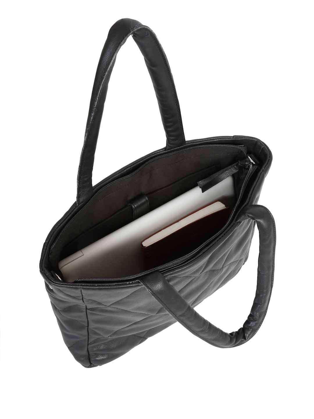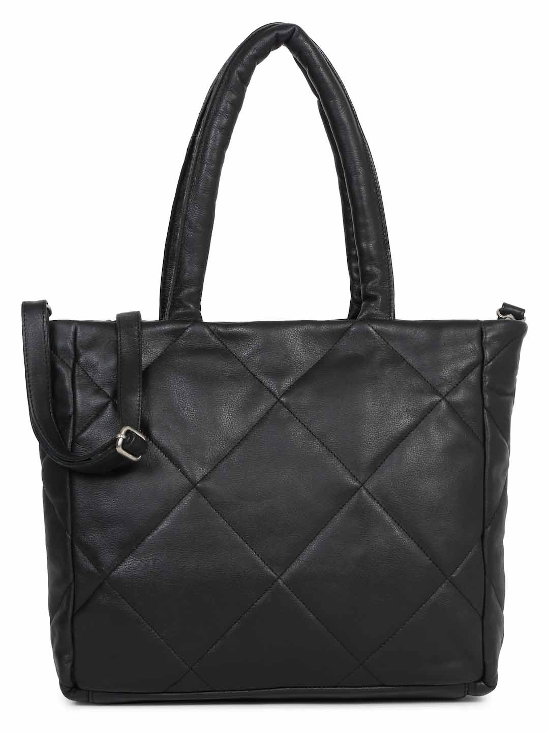 Suvaska Quilted Leather Tote Bag for Women | Black Montclair handbag | Premium-Quality Genuine Leather |