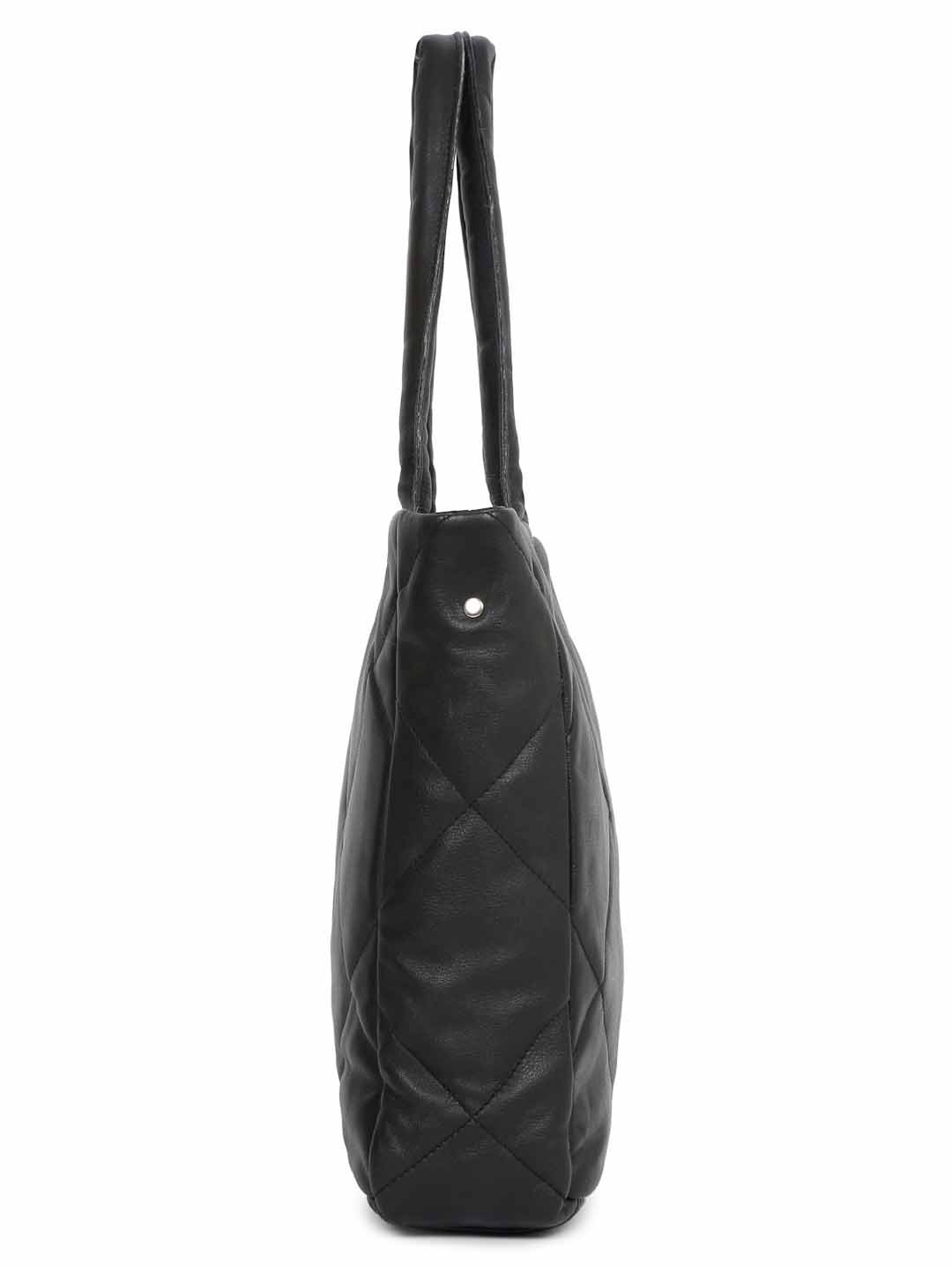 DESIGN FEATURES: Spacious tote-style bag with double handles and distinctive cross-pattern quilting for a refined, sophisticated appearance.