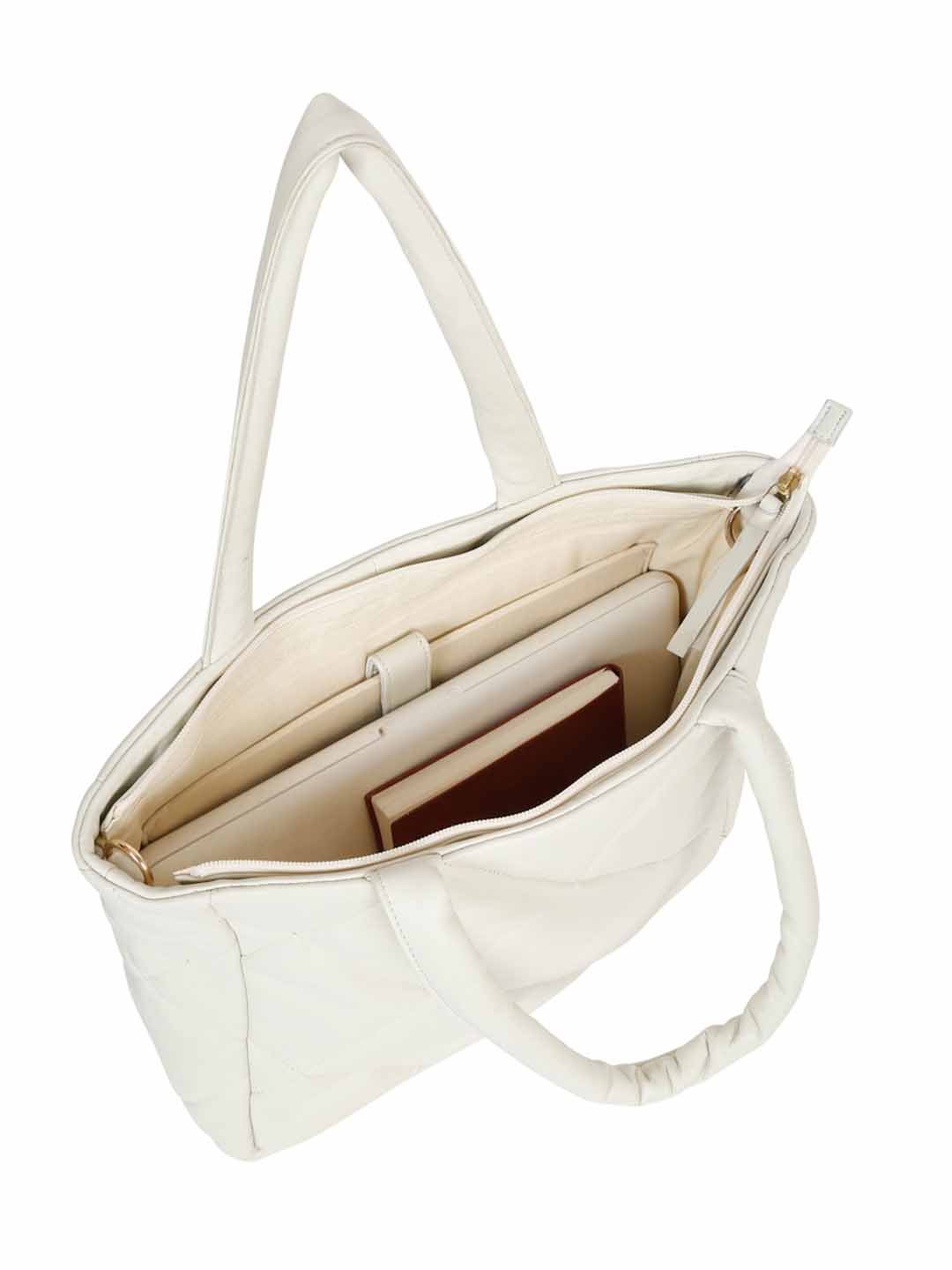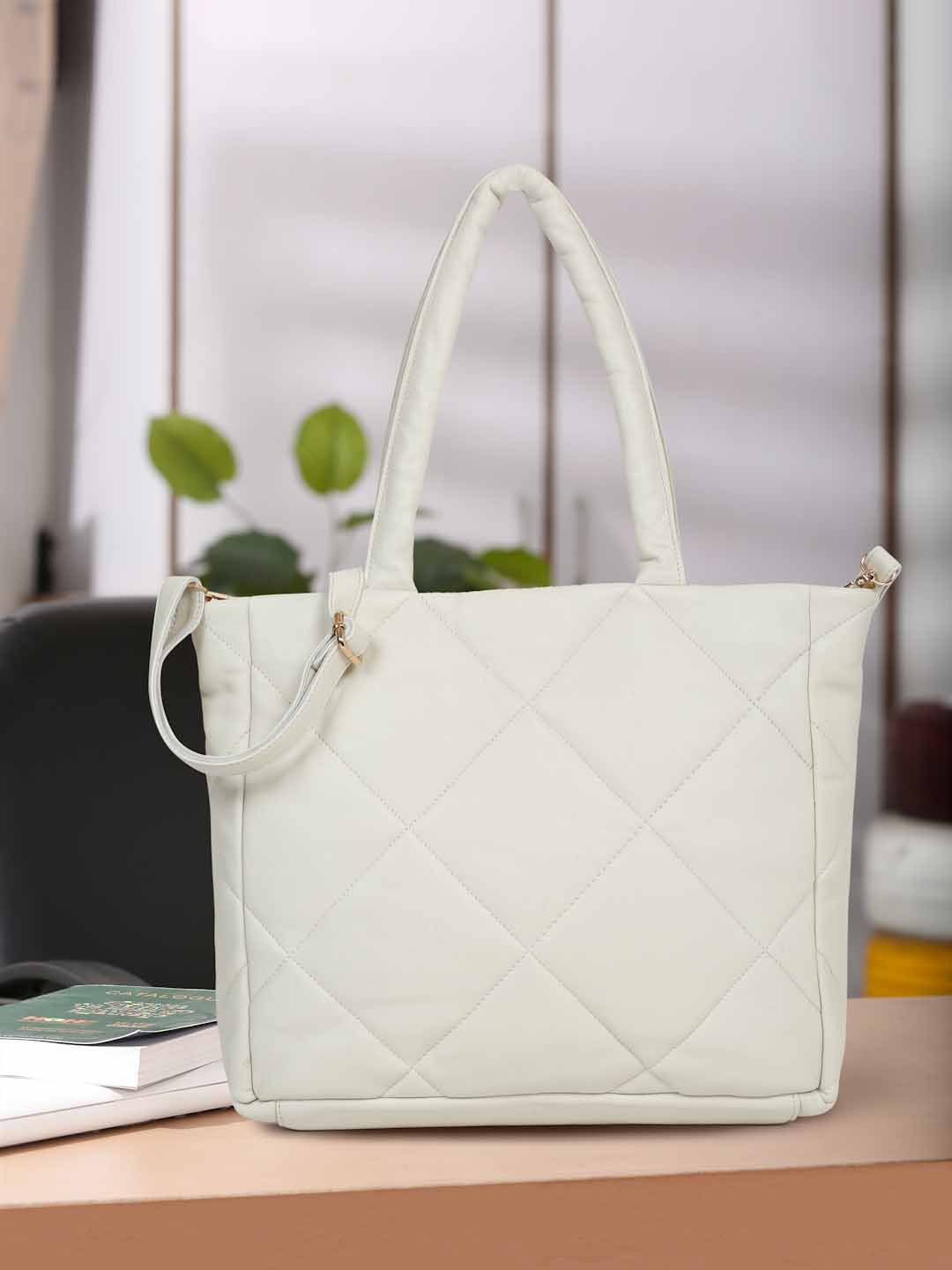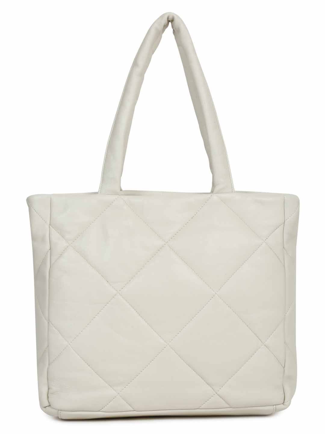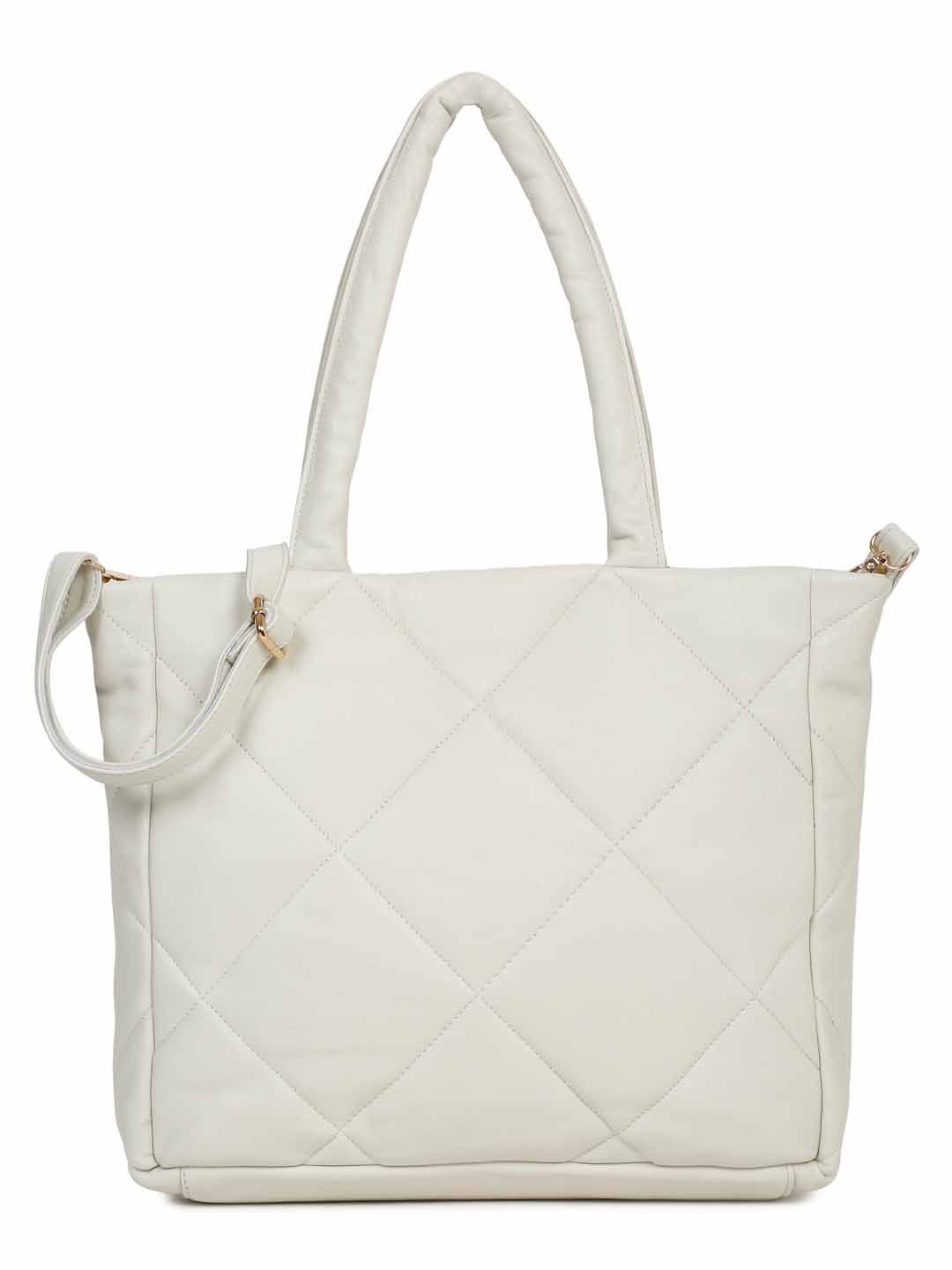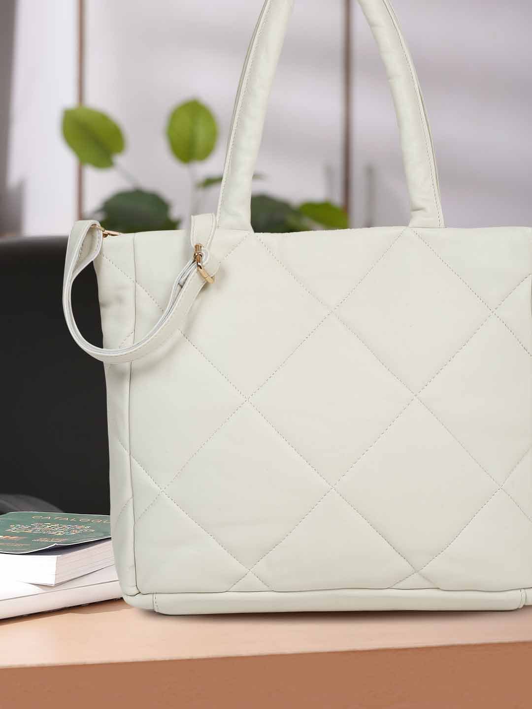 Suvaska Quilted Leather Tote Bag for Women | White Montclair handbag | Premium-Quality Genuine Leather |