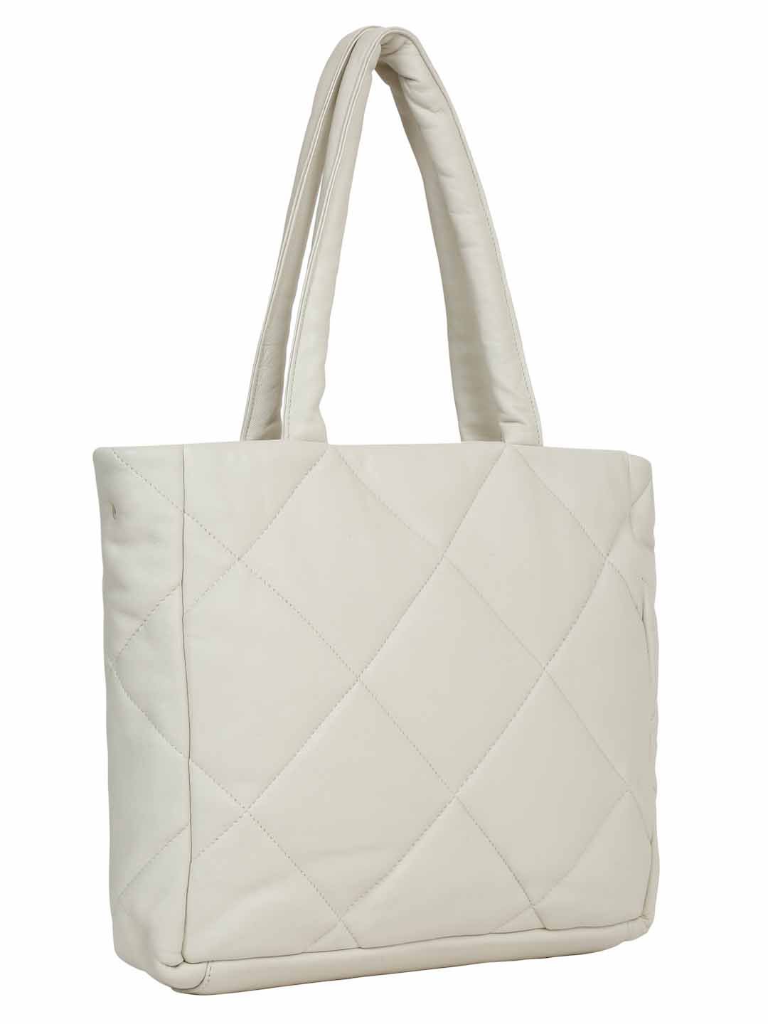 Elevate your everyday style with this sophisticated white Leather Tote Bag for Woman, featuring an elegant diamond-quilted pattern. Meticulously crafted from genuine leather, this spacious tote showcases exceptional craftsmanship with precise quilted detailing and durable construction.
