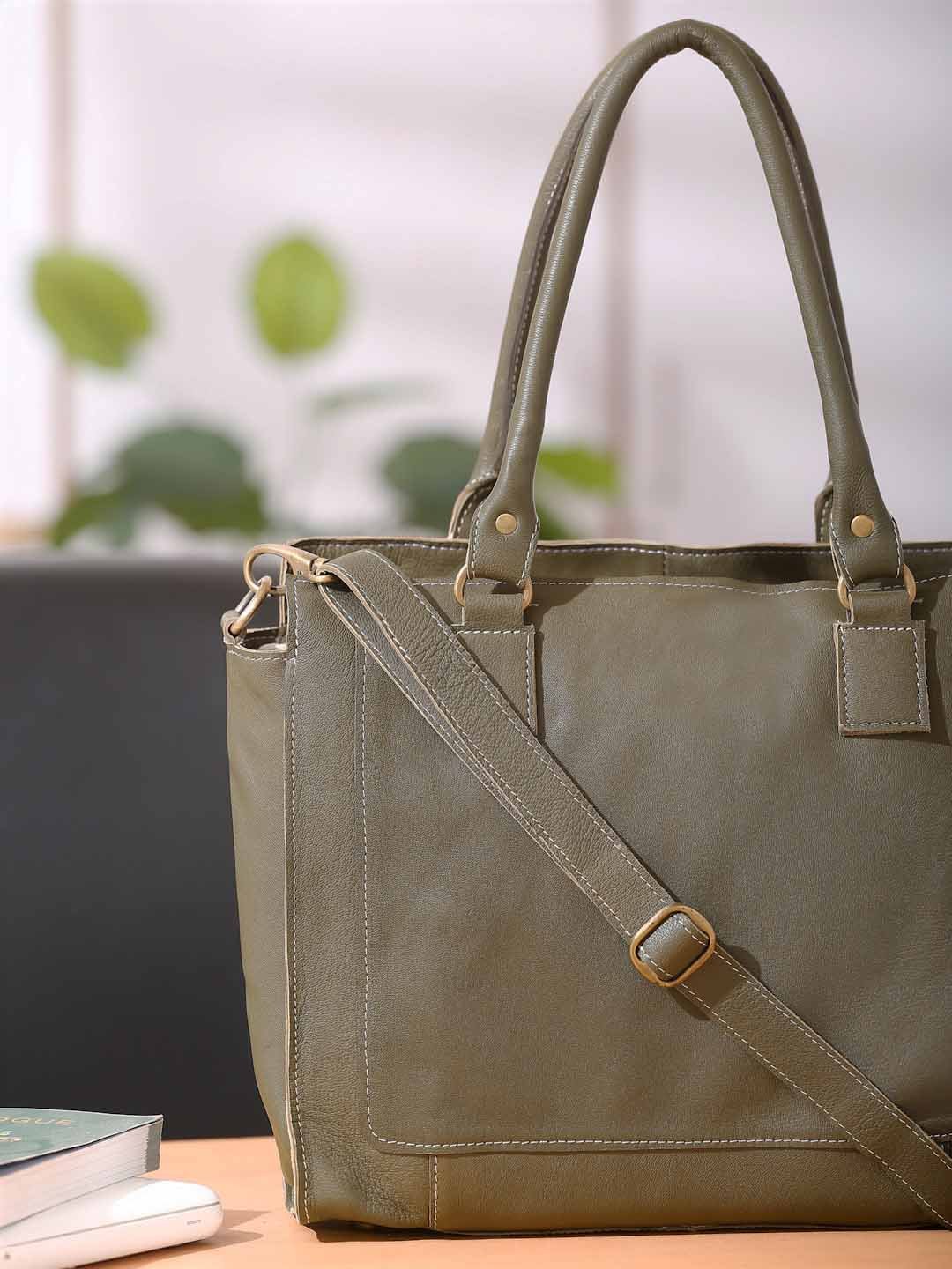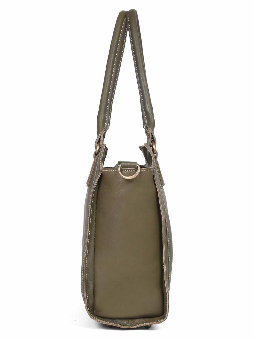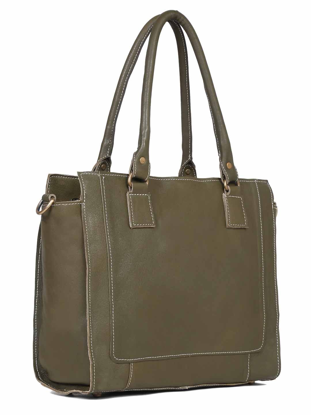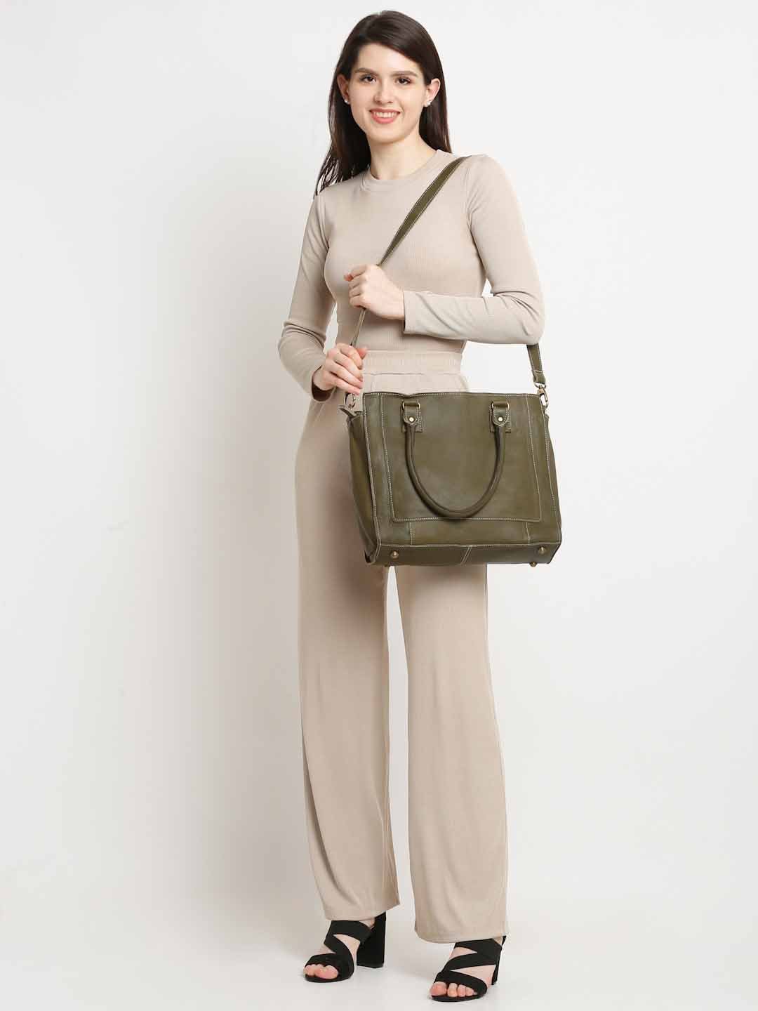 Suvaska Women’s leather tote bag for woman | Olive Green | Dual Handle with Shoulder Strap | Premium-Quality Genuine Leather |