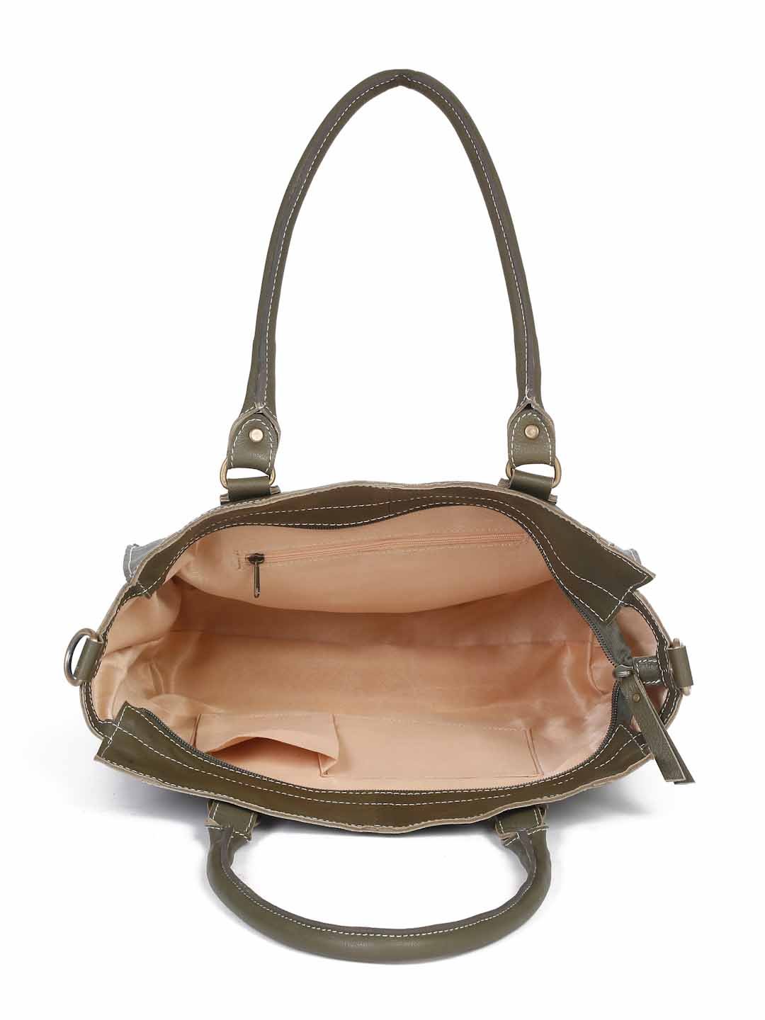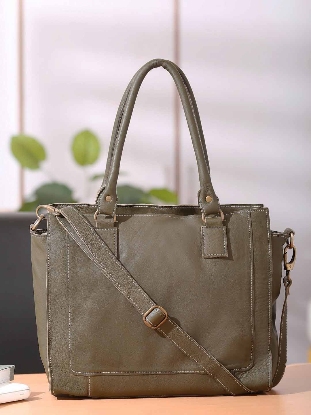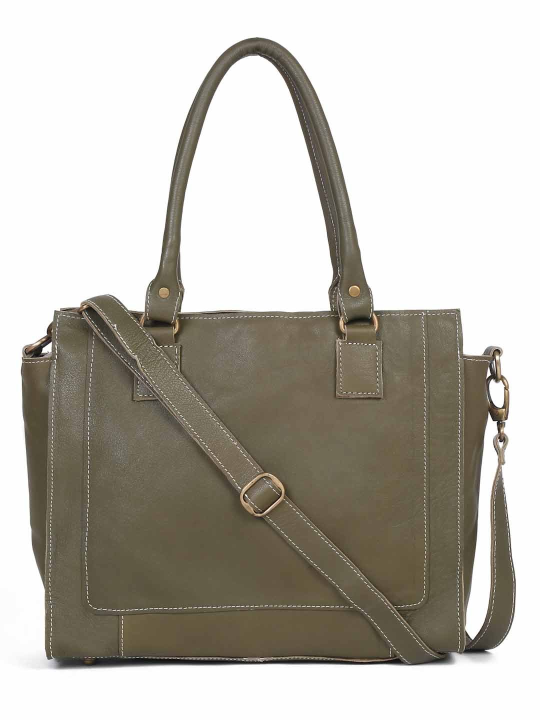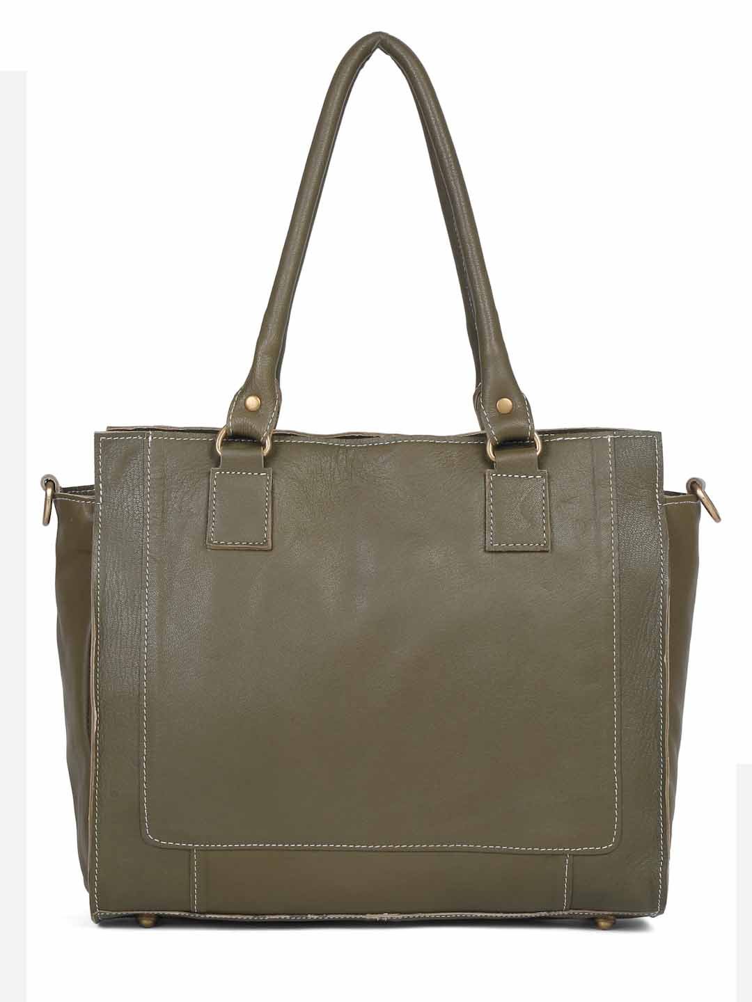 Suvaska Women’s leather tote bag for woman | Olive Green | Dual Handle with Shoulder Strap | Premium-Quality Genuine Leather |
