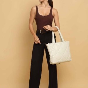 Suvaska Quilted Leather Tote Bag for Women | White Montclair handbag | Premium-Quality Genuine Leather |
